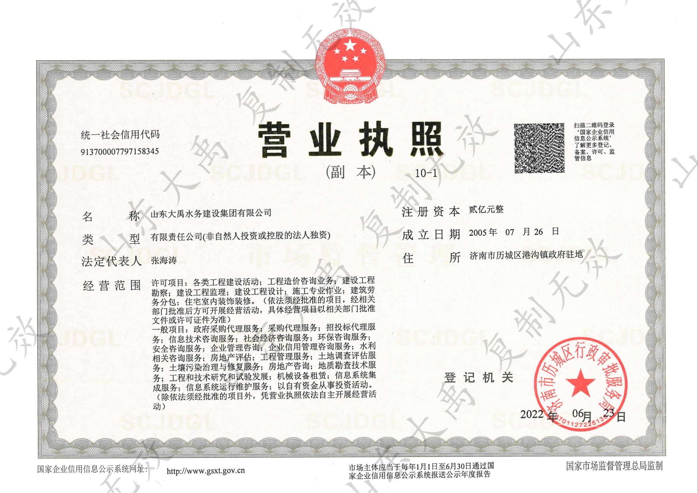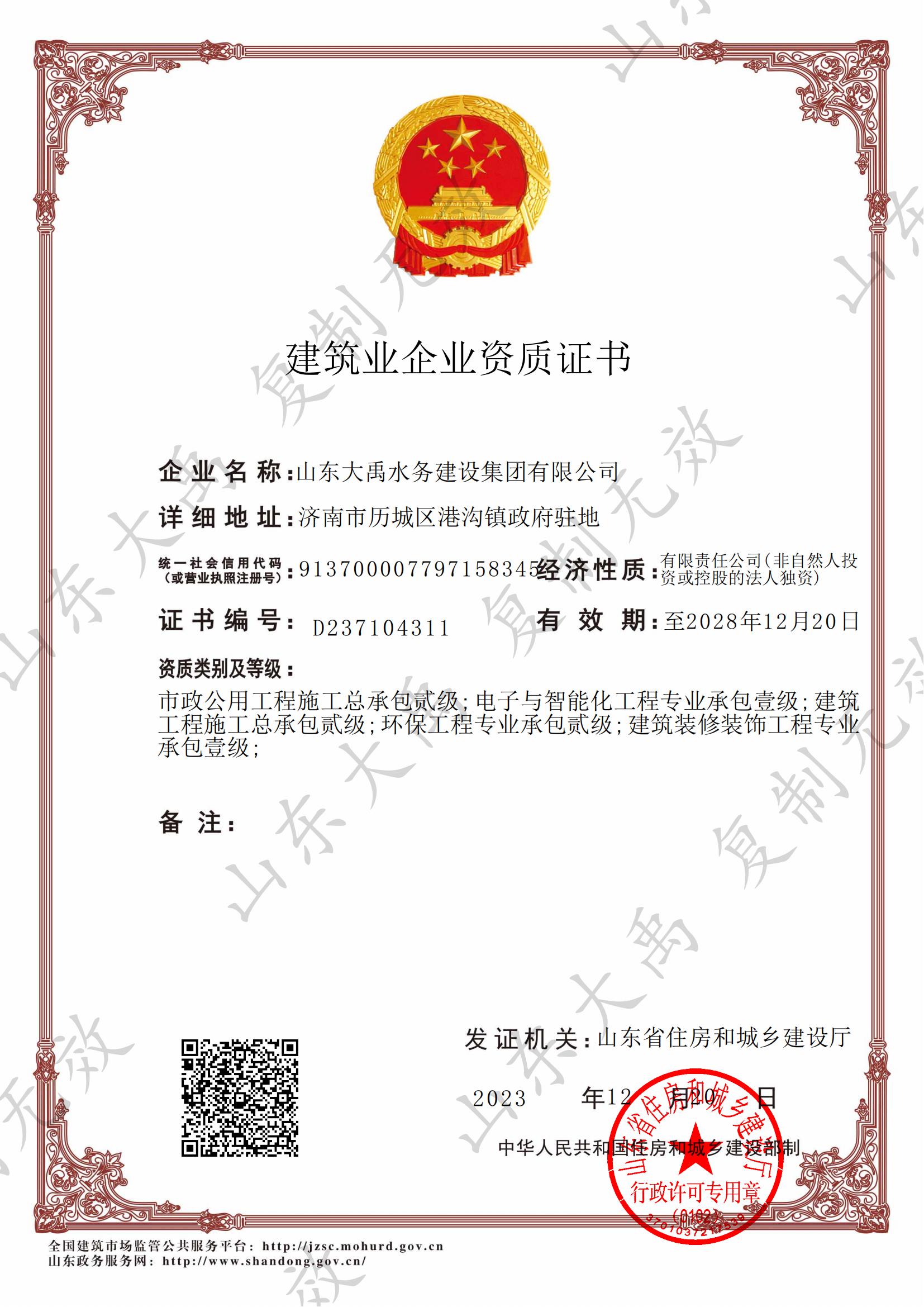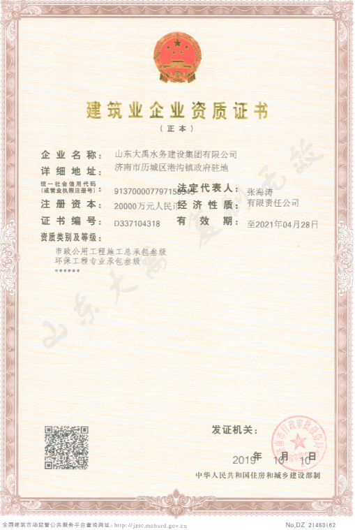 山東大禹水務(wù)建設(shè)集團有限公司