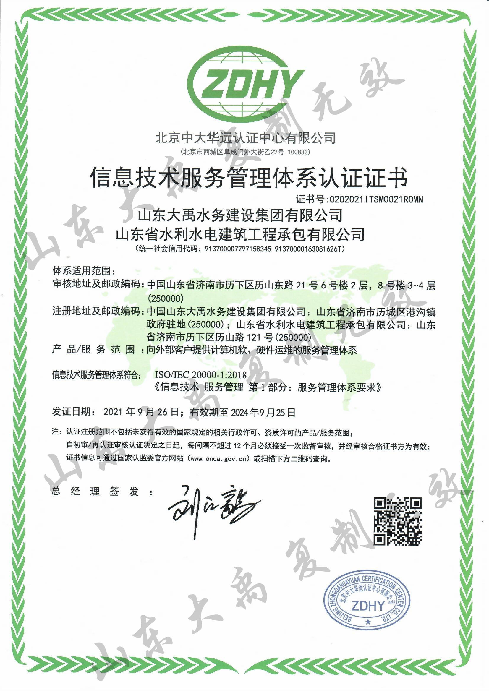 水利一級資質(zhì)證書