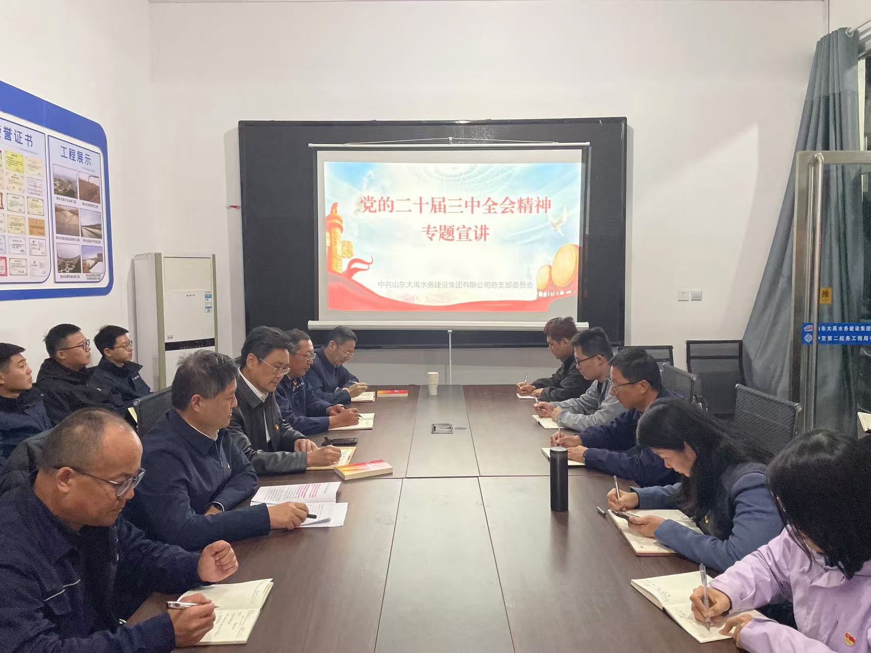 為深入學習貫徹黨的二十屆三中全會精神,引導集團公司廣大黨員干部職工增強進一步全面深化改革的政治自覺、思想自覺、行動自覺,10月23日,大禹集團黨總支采取“走出去”的方式,深入集團公司承建的京杭運河濟寧至東平段航道“三改二”(柳長河段)工程與東平湖老湖區洪水相機南排工程(以下簡稱南排工程)施工8標項目建設現場,開展學習貫徹黨的二十屆三中全會精神專題宣講,實地察看項目建設推進情況。黨總支書記、董事長張海濤出席活動并作宣講。